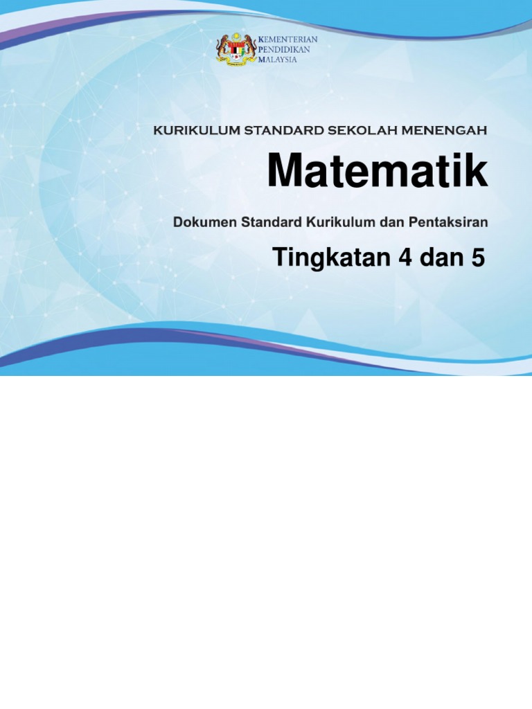 Huraian Sukatan Pelajaran ini mengandungi Matlamat Objektif dan Organisasi Kandungan. Bahagian Pembangunan Kurikulum Kementerian Pelajaran Malaysia. Himpunan nota padat matematik tingkatan 4 kssm.